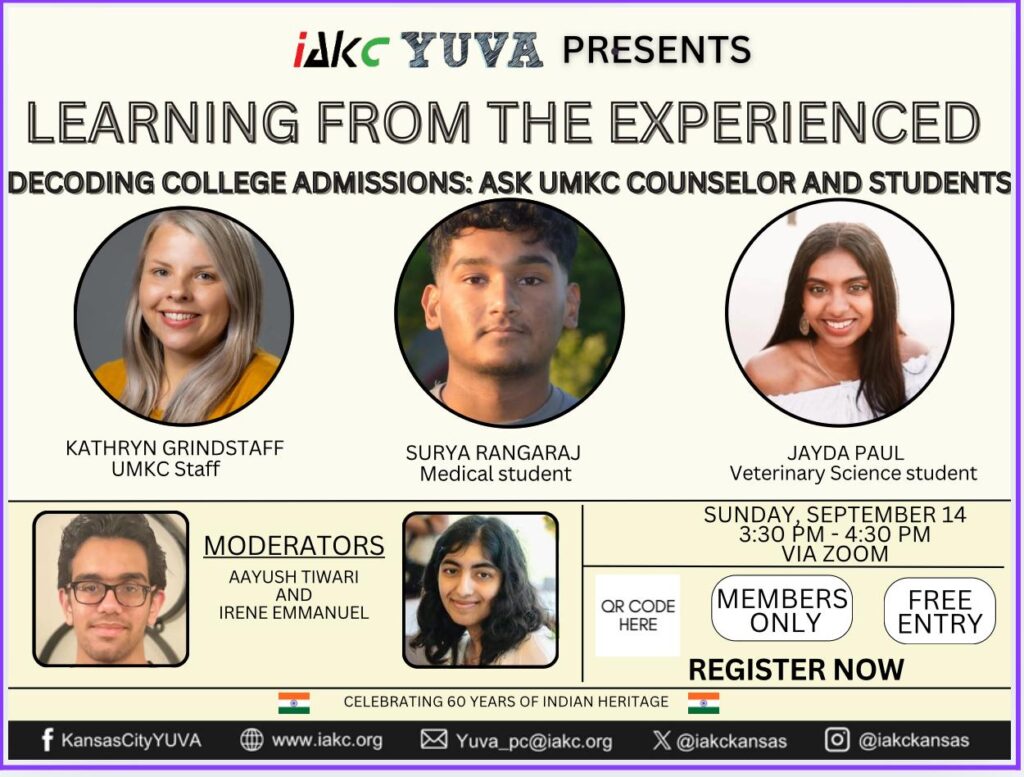 – Surya Rangaraj : 3rd year Premedical student. Surya will share his personal journey and his experience navigating the 6 year medical program at UMKC.